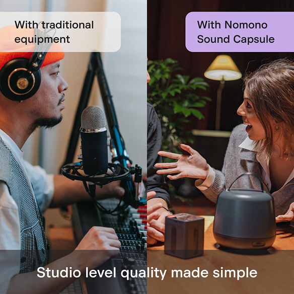 Premium: Our most complete package. Includes the Nomono Sound Capsule, advanced spatial audio tools, premium Studio Cloud features, and expanded storage. Designed for teams recording with up to 4 people and collaborating with up to 3 editors. Supports high-volume audio production, with 10 hours of included cloud processing per month (additional hours available).